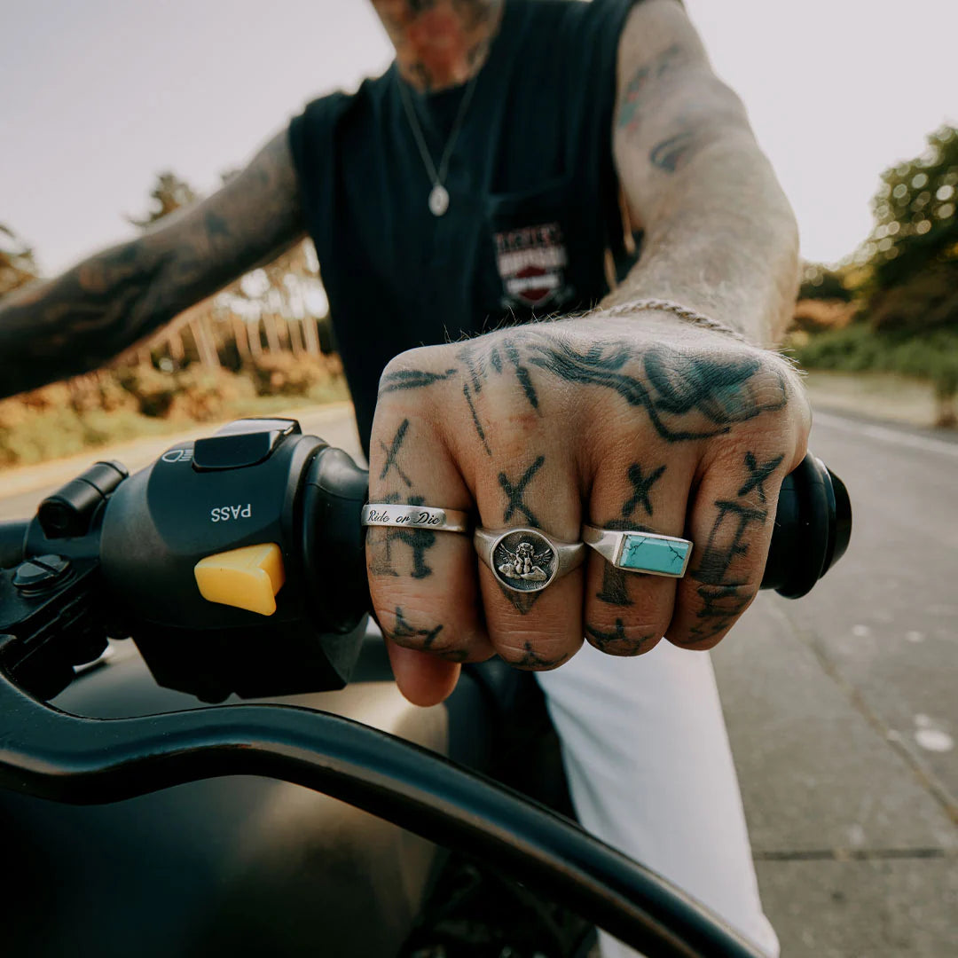 The ring is engraved with the slogan 'Ride or Die', an expression for any friend, family member, or romantic partner, who will always stick by your side.